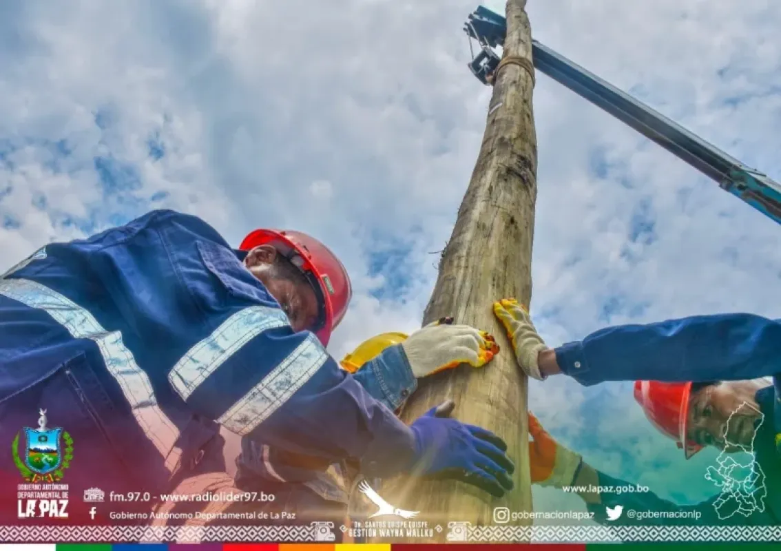 El gobernador Santos Quispe ejecutó en el municipio de Palos Blancos, provincia Sud Yungas. La primera de las obras de electrificación que beneficiará a las comunidades de Brecha “E” y Brecha “F”.