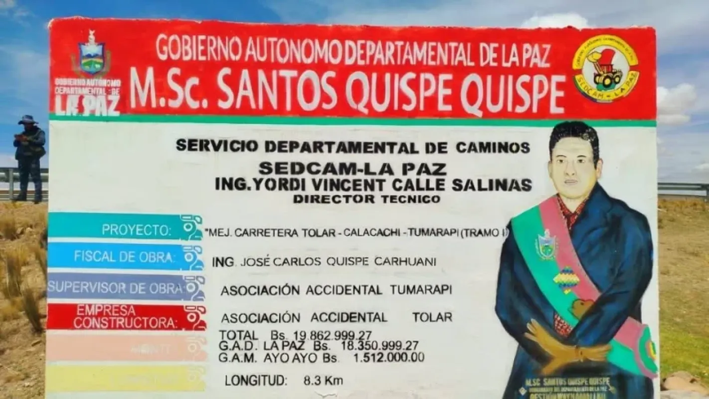 El proyecto “Carretera Construcción Tolar-Calacachi-Tumarapi Tramo I” ha sido finalizado y entregado. Este primer tramo, ubicado dentro del municipio de Ayo Ayo de la provincia Aroma, comprende una longitud de aproximadamente 8.3 kilómetros. La obra, que mejora sustancialmente la red vial local, implicó una inversión de Bs 19.862.999,27.