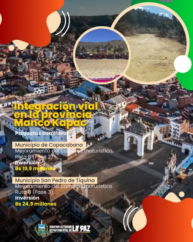 El Gobernador de La Paz, Santos Quispe Quispe, ha iniciado una nueva etapa del proyecto de desarrollo vial y turístico. La Fase 3 del Mejoramiento del Camino Etnoturístico Ruta 8 en la provincia Manco Kapac se encuentra actualmente en ejecución. Esta fase, que recorre una longitud de 16 kilómetros, ha sido recibida con agradecimiento por los pobladores del municipio de San Pedro de Tiquina, ya que consolida la conectividad regional y el potencial turístico de la zona.