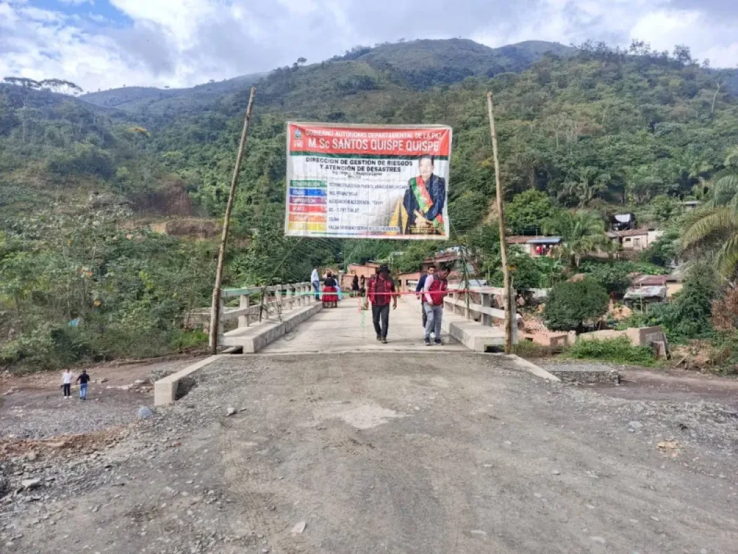 El Gobernador de La Paz, Santos Quispe, hizo realidad la necesidad de paso vehicular en el municipio de Tipuani con la entrega del puente Río Gritado. La obra, que mide 21 metros de longitud, fue concluida y entregada el 25 de julio de 2025. El proyecto, que tuvo una inversión de Bs 2 millones, es vital para el transporte y la seguridad de la población, ya que resuelve el problema de interrupción del paso vehicular, especialmente durante la época de lluvias.