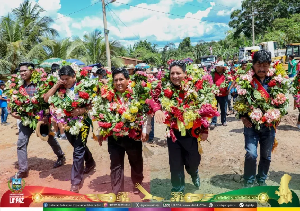 El gobernador del departamento de La Paz, MSc. Santos Quispe Quispe, llegó al municipio de Palos Blancos, provincia Sus Yungas para dar inicio al proyecto "Mej. Carretera Km 49 - 200" y cuenta con 8 kilómetros de longitud.