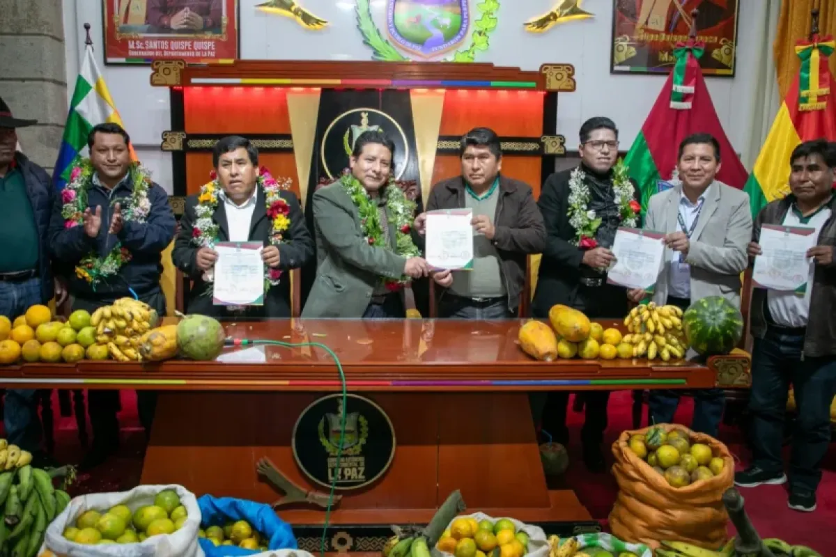 El Gobernador de La Paz, Santos Quispe firma de la estructura de financiamiento del proyecto “Mejoramiento Carretera Alto Inicua – Bajo Inicua – Muchani”, puso en marcha esta obra clave de 8 kilometros que transformará la conectividad, el comercio y la calidad de vida.