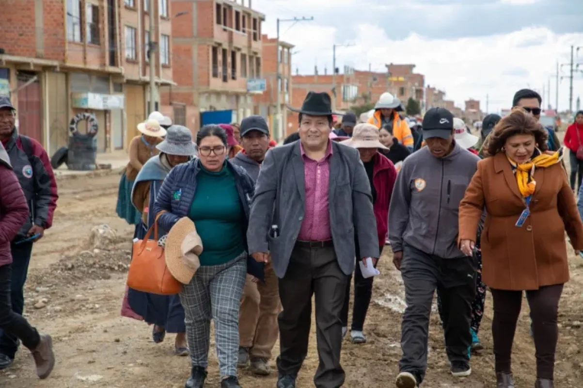 El Gobernador Santos Quispe realizó una inspección al avance de las obras del proyecto de Construcción pavimento rígido de la Avenida Jach'a Tupo. Esta es una macro-obra considerada de alta magnitud que busca la integración directa de los municipios de El Alto y Viacha. La infraestructura vial, que se encuentra en ejecución, representa una significativa inversión superior a Bs 50 millones y contribuirá al flujo vehicular y al desarrollo económico de ambas regiones.