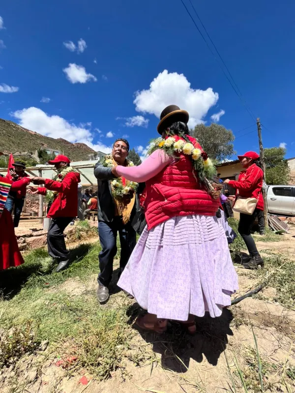 "El liderazgo no se mide desde la mesa de un escritorio, sino en el campo, escuchando las necesidades del pueblo y trabajando para cumplir cada promesa", destacó Santos Quispe en compañía del candidato a alcalde de Mecapaca, Ever Venegas.