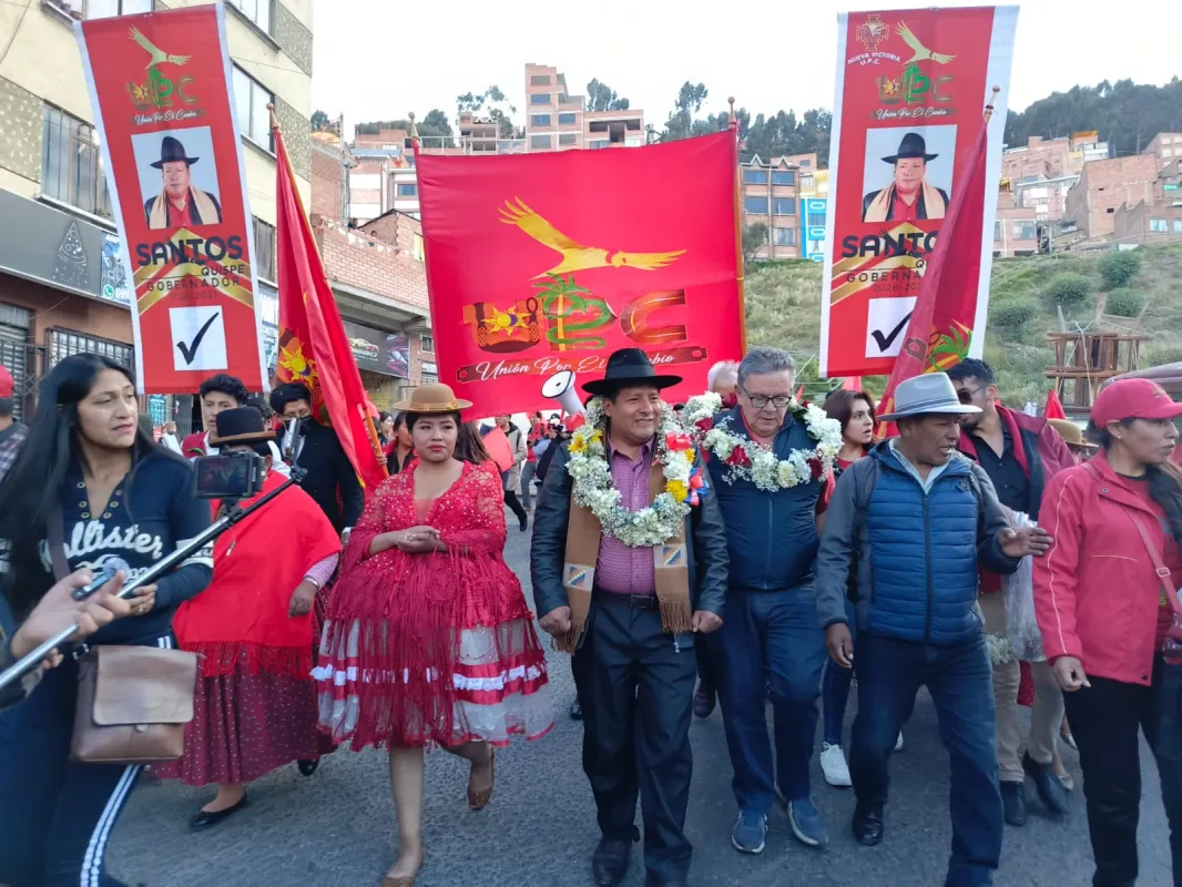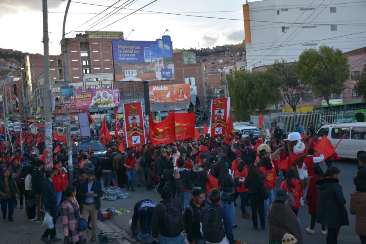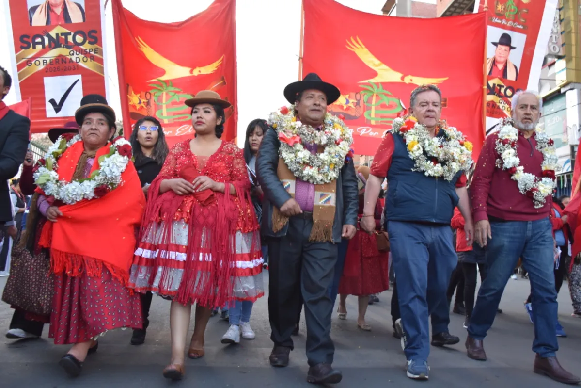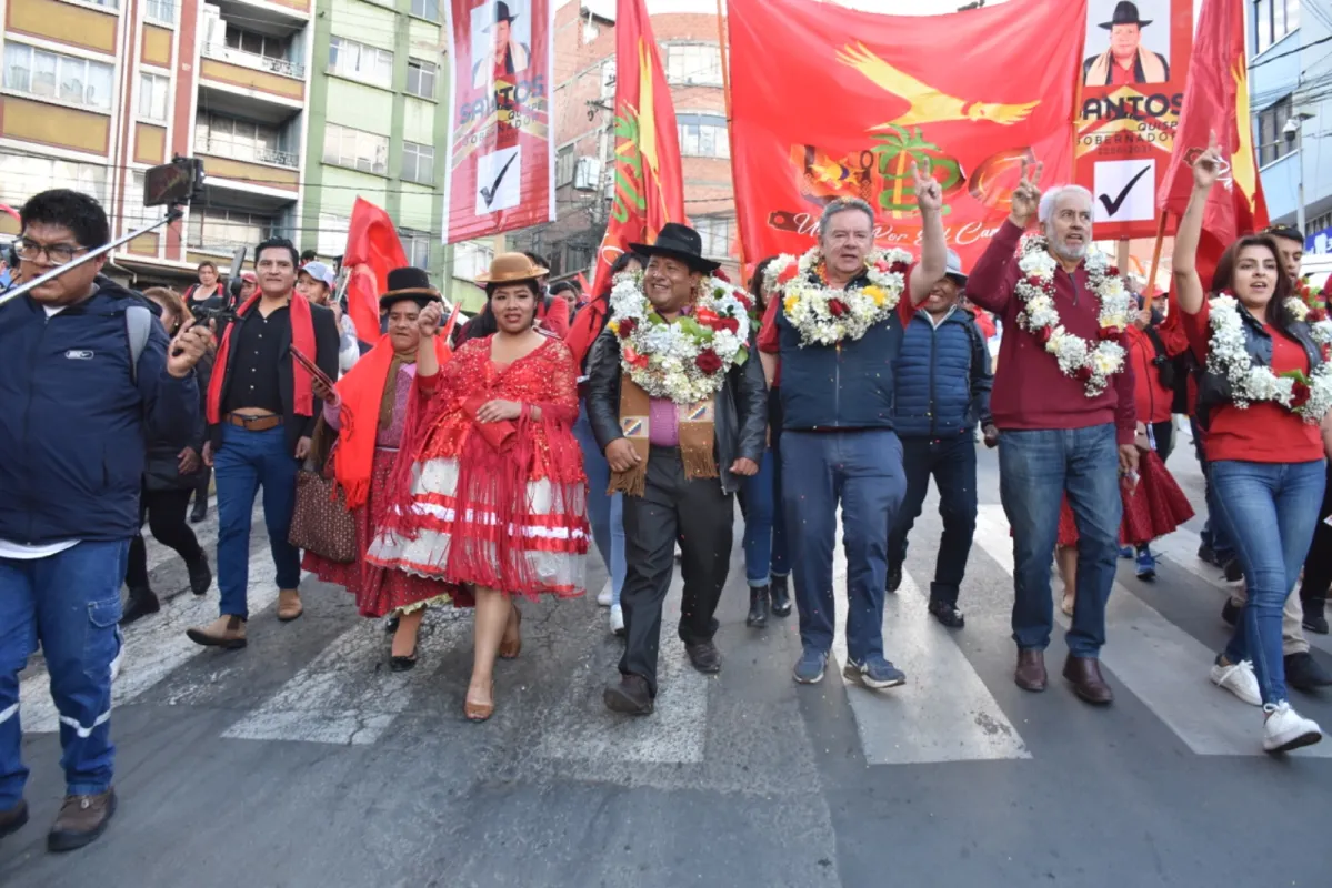 "Queremos que nuestras autoridades trabajen de forma conjunta. Por eso apoyamos al hermano Santos Quispe para Gobernador y Chichi Siles, para alcalde de La Paz", dijo una simpatizante que se sumo a la marea roja.