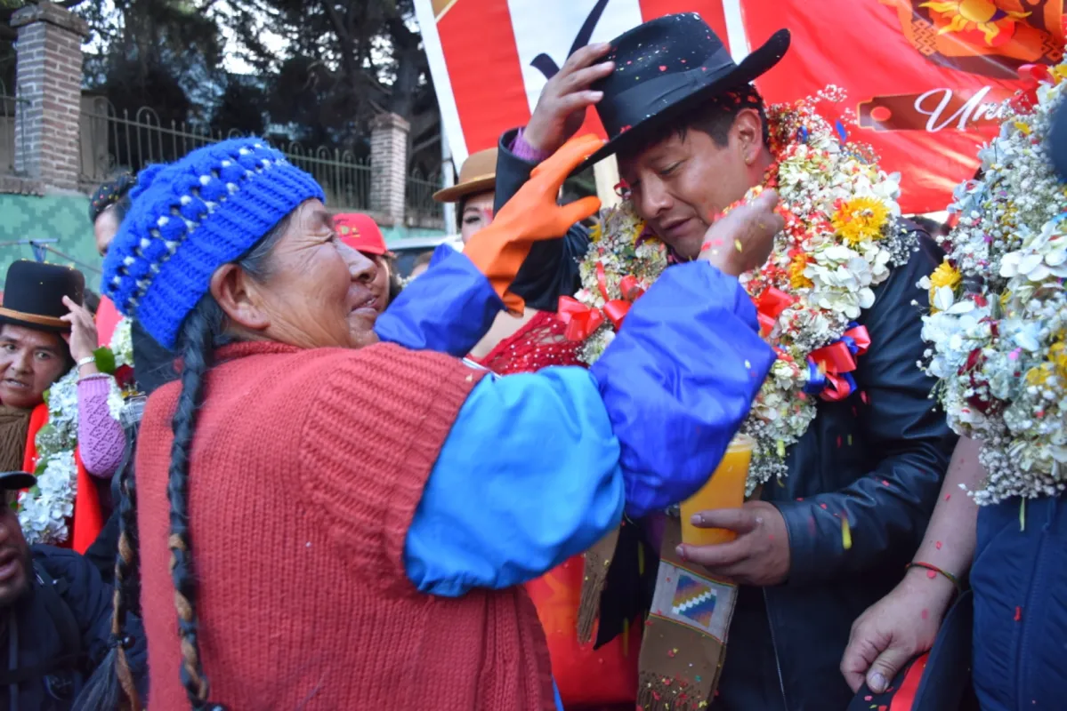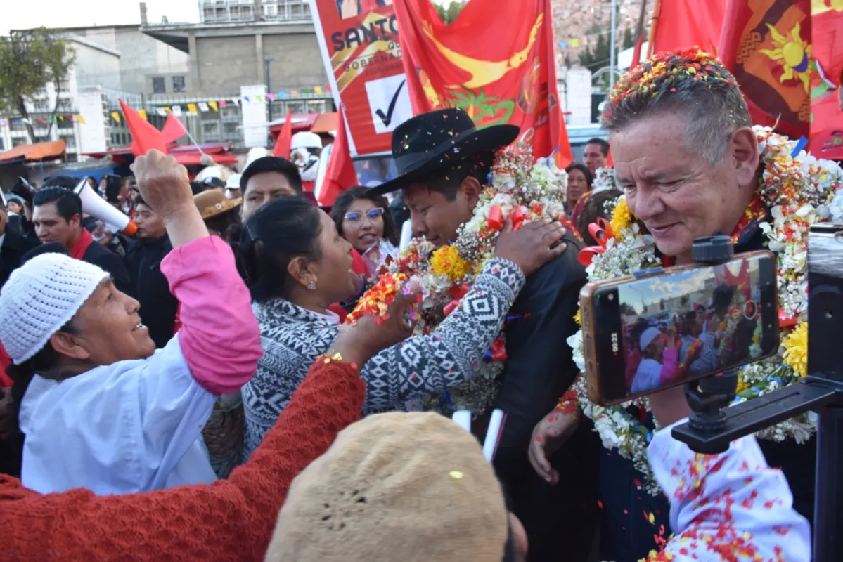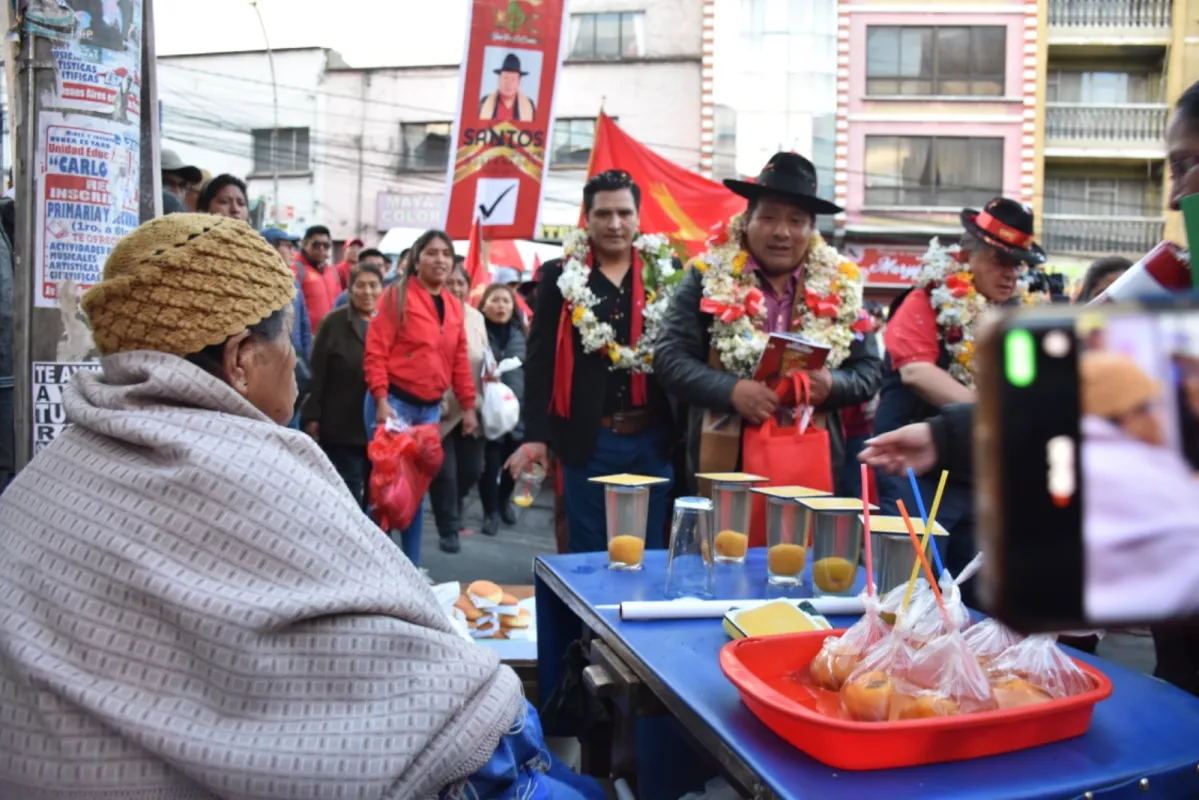Abrazos en medio de arengas de apoyo matizaron el clima de celebración de cientos de vendedores ambulantes del municipio paceño, al momento de acompañar al candidato a Gobernador por Unión Por el Cambio (UPC), Santos Quispe.